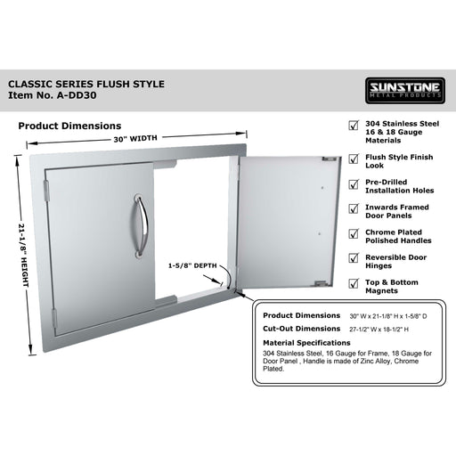 View full detailsSunstone 30" Double Door Flush Mount A-DD30 Product Description Sunstone Classic Series Flush Style 30",36",42" Double Doors are the most Affordab...