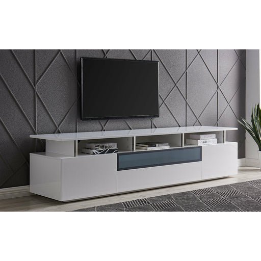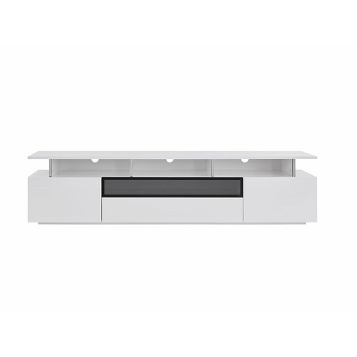 View full detailsWhiteline Modern Living - Taylor TV Unit EC1398-WHT Product Description High Gloss White with Gray glass middle drawer, 1 middle drawer and 2 side...