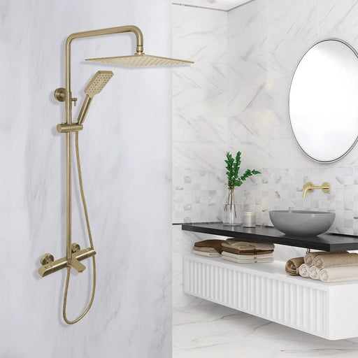 View full detailsAquadom ZEN 3-Function Thermostatic Shower System with 10″ Square Rainfall Head Brushed GoldFinish Product Description AQUADOM ZEN Three Functio...