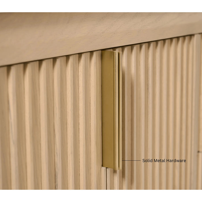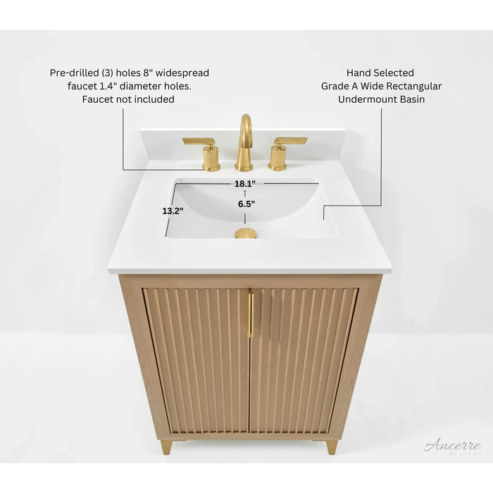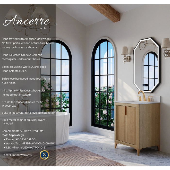 The Turlington Collection bath vanity effortlessly combines natural warmth with refined craftsmanship. Showcasing a stunning oak finish with vertical slat detailing, this vanity perfectly balances timeless elegance and modern functionality. The sleek White Quartz countertop contrasts beautifully with the warm wood tones, while gold-toned hardware adds a luxurious touch. Behind its stylish doors and drawers lies ample storage space for all your bathroom essentials.