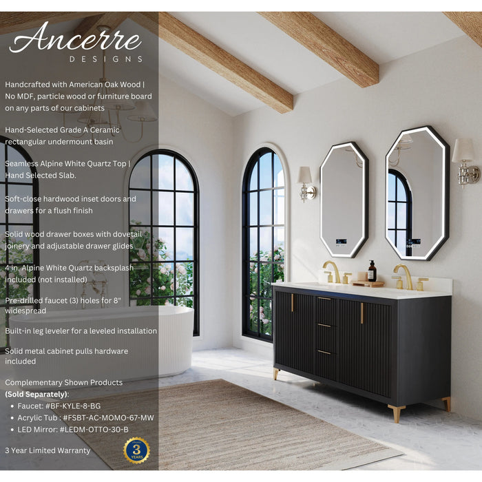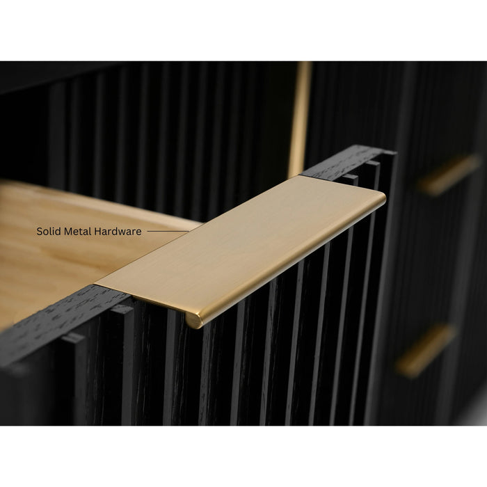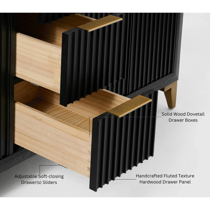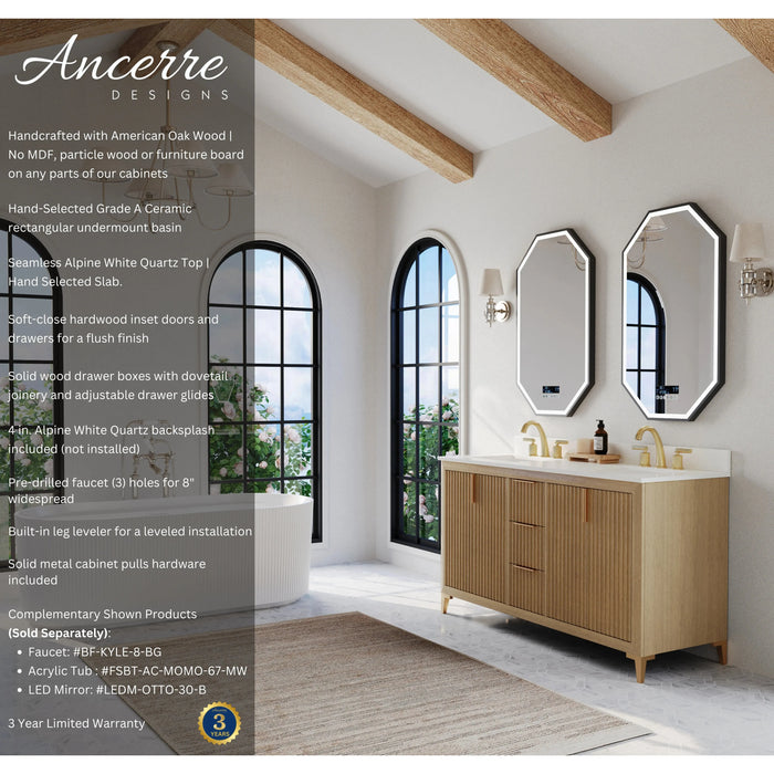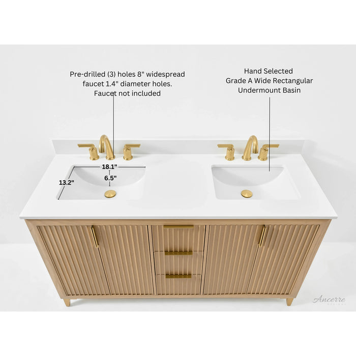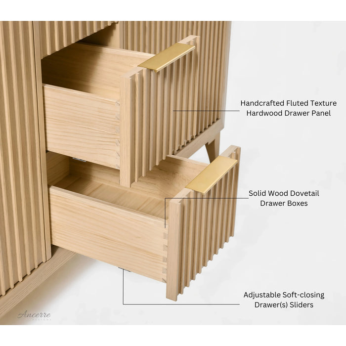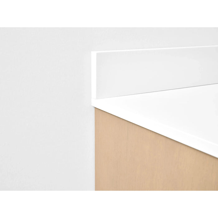 The Turlington Collection bath vanity effortlessly combines natural warmth with refined craftsmanship. Showcasing a stunning oak finish with vertical slat detailing, this vanity perfectly balances timeless elegance and modern functionality. The sleek White Quartz countertop contrasts beautifully with the warm wood tones, while gold-toned hardware adds a luxurious touch. Behind its stylish doors and drawers lies ample storage space for all your bathroom essentials.