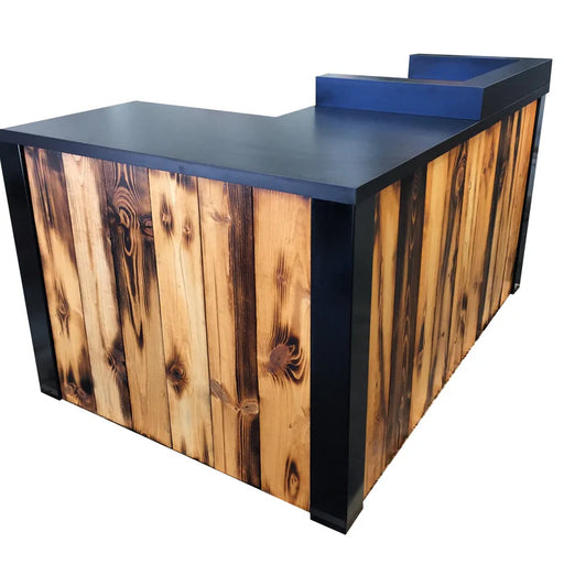 View full detailsReception Counter Solutions | Venice Reception Desk Product Description Torched wood reception desk with hot rolled steel riser frame! 100% ha...