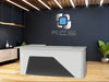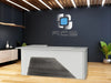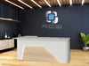 The desk has clean lines and is built with commercial-grade materials that are anti-microbial for easy clean-up. There is rear storage with two adjustable shelves, perfect for a small printer and office supplies. The Ambiance Arc Desk comes standard with grommet holes for wire management, plastic sliders to protect your flooring, and LED lights with a wireless remote. This desk is perfect for any office, retail store, nail salon, hair salon, boutique store, bank, and much more.