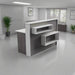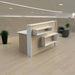 The desk has a bold look that will definitely be the center of attention in your workspace. The desk has clean lines and is built with commercial-grade materials that are anti-microbial for easy clean-up. My Madison Reception desk comes standard with grommet holes for wire management, and plastic sliders to protect your flooring. This desk is perfect for any office, retail store, nail salon, hair salon, boutique store, bank, and much more. The integrated front shelves can be used to display products in your store, decor for your office, or just about anything you can think of. Have fun with it!