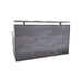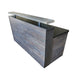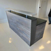 Distressed wood and hot rolled steel reception desk. This reception counter or reception desk is perfect for any office or retail store. Each desk is uniquely designed with the combination of precision CNC equipment and handmade elements. The main body of the reception desk is CNC cut for easy assembly and shipping. The front and side panels are simulated scorched oak Laminate that has a clean rustic desk style. The top riser of the desk is hand-carved Douglas Fir to give the look of live edge beach wood.