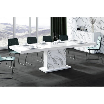 View full detailsWhiteline Modern Living - Geneva Dining Table DT1640-BLK Product Description White or Black Glossy Marble Top. Double Pedestal Marble Base Polish...
