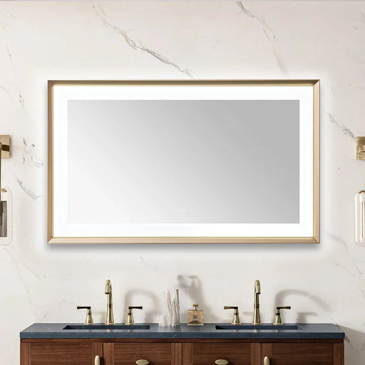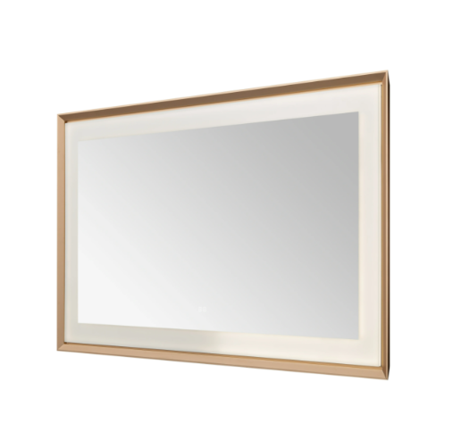 • Aquadom Madison 60''x 36'' x 2.28'' LED Lighted Chamfer Frame Mirror with Defogger Brushed Gold Finish