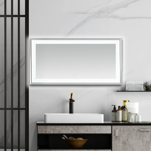 • Aquadom Lexington 60''x 36'' x 2.28'' LED Lighted Slim Frame Mirror with Defogger Chrome Finish