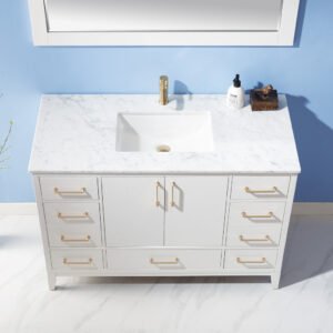 Altair Sutton 48″ Single Bathroom Vanity Set in White and Carrara White Marble Countertop with Mirror 541048-WH-CA