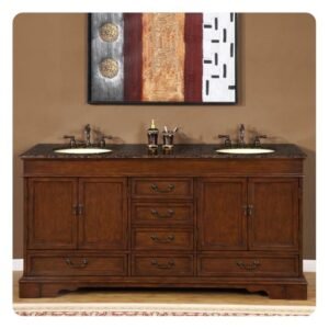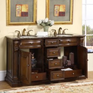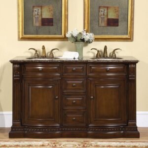 Silkroad Exclusive 60” Baltic Brown Granite Top Double Sink Bathroom Vanity – HYP-0712-BB-UIC-60