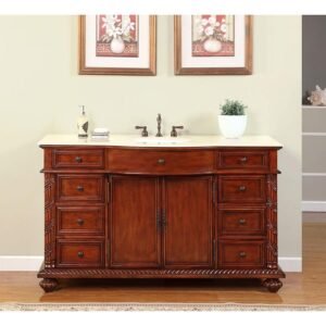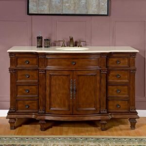 Silkroad Exclusive 60” Crema Marfil Marble Top Single Sink Bathroom Vanity – FS-0268-CM-UWC-60