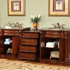 Silkroad Exclusive 84.5” Baltic Brown Granite Top Double Sink Bathroom Vanity – HYP-0206-BB-UIC-85
