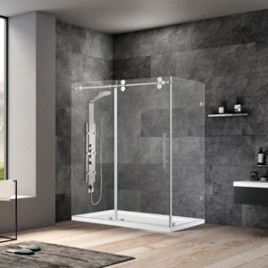 Vinnova Villena 60″ W x 78″ H Rectangle Single Sliding Frameless Shower Enclosure in Matt Black 312060+36P-MB