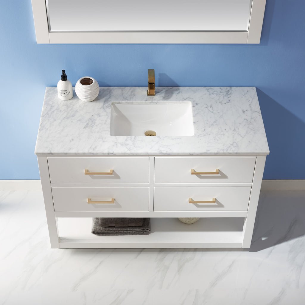 Altair Remi 48″ Single Bathroom Vanity Set in White and Carrara White Marble Countertop with Mirror 532048-WH-CA