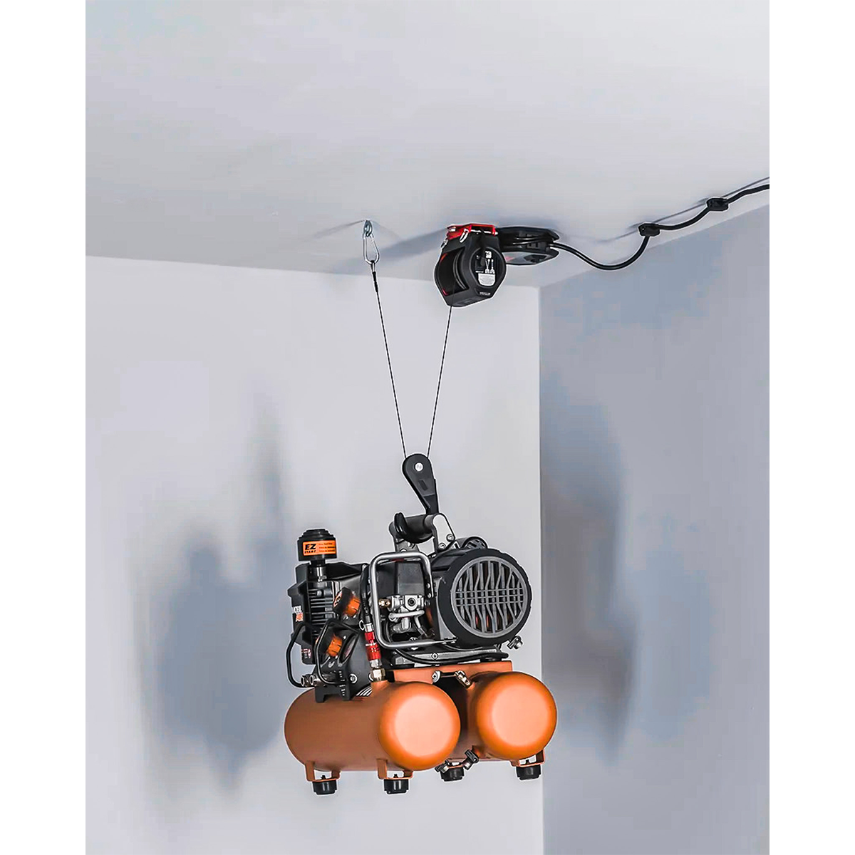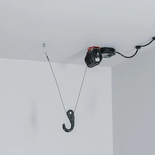 Safely store your items overhead with Garage Smart’s motorized Basic Lifter. Lift strollers, sports gear, and other items up and out of the way to maximize your garage space.