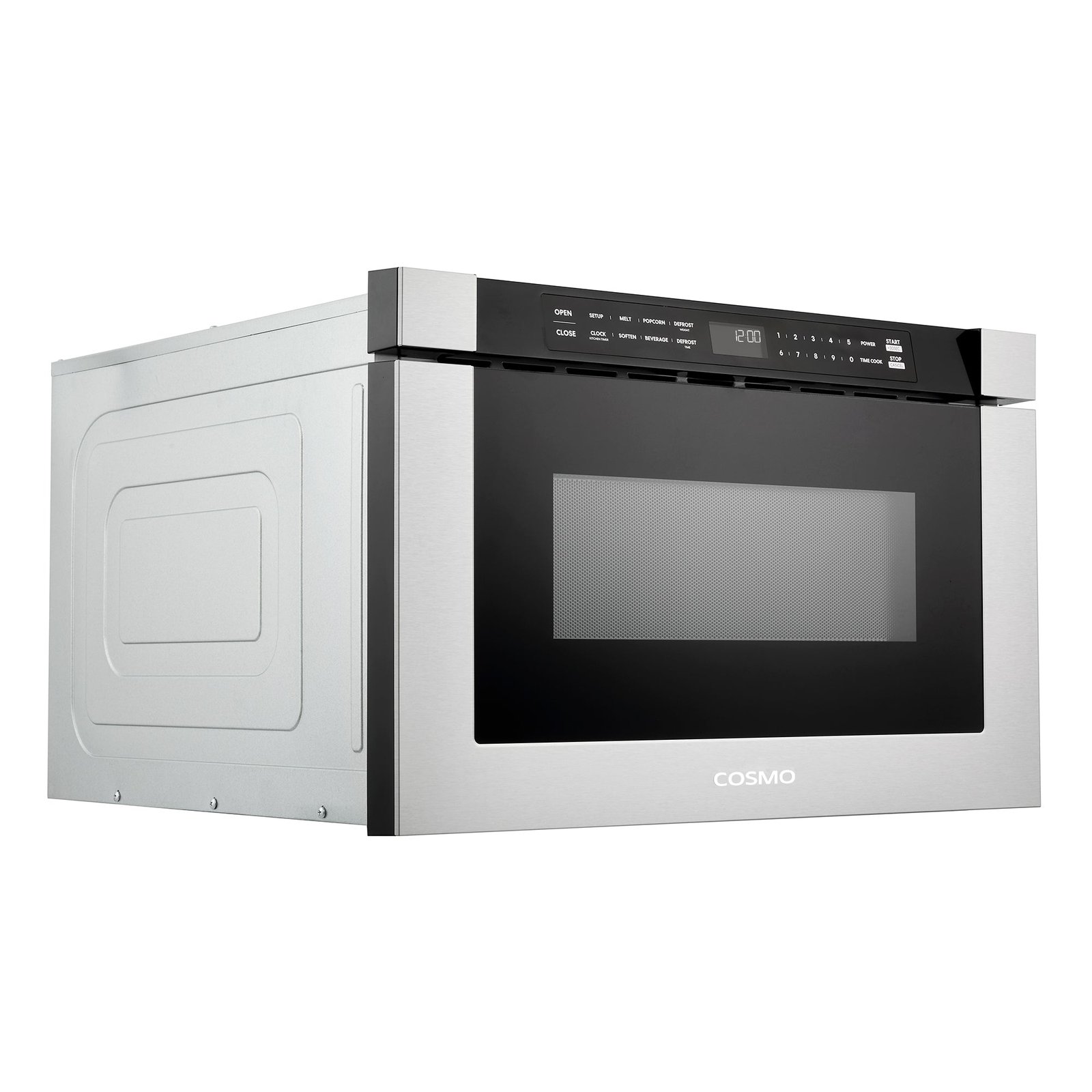 Save space in your kitchen by seamlessly integrating the Cosmo Microwave Drawer into your cabinetry. This top loading microwave drawer provides a clutter-free countertop with its built-in installation. Make every meal delicious with 11 power levels and 1000 watts of cooking power. Easily open and close the microwave with the touch of a button on the easily accessible control panel. Effortlessly heat meals with automatic presets including melt, soften, popcorn and beverage. Effectively thaw food with the weight or time defrost options; a defrosting rack is included, letting you make the the most of the microwave’s capacity. This microwave is built with safety in mind, providing a child lock function. The sleek stainless steel build fits perfectly into any modern kitchen design.