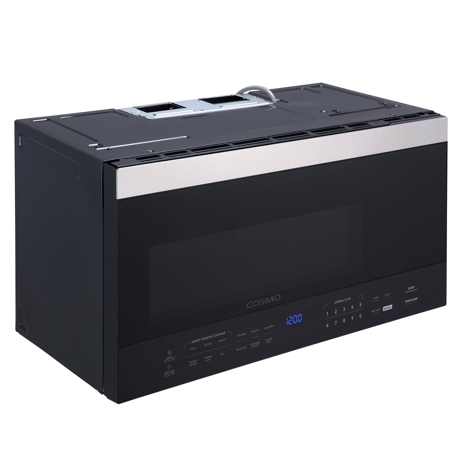 Maximize your Kitchen space with this Cosmo Over-the-Range microwave also equipped to clear the air as a range hood. 1000 Watts of cooking power allow you to cook your favorite foods quickly and thoroughly. The touch of a key is all it takes to prepare your favorite meals and snacks with 10 power levels for plenty options. Other many unique features, such as a sleek easy-to-read digital display, high quality lighting for better visibility and sensor reheat and cooking technology.