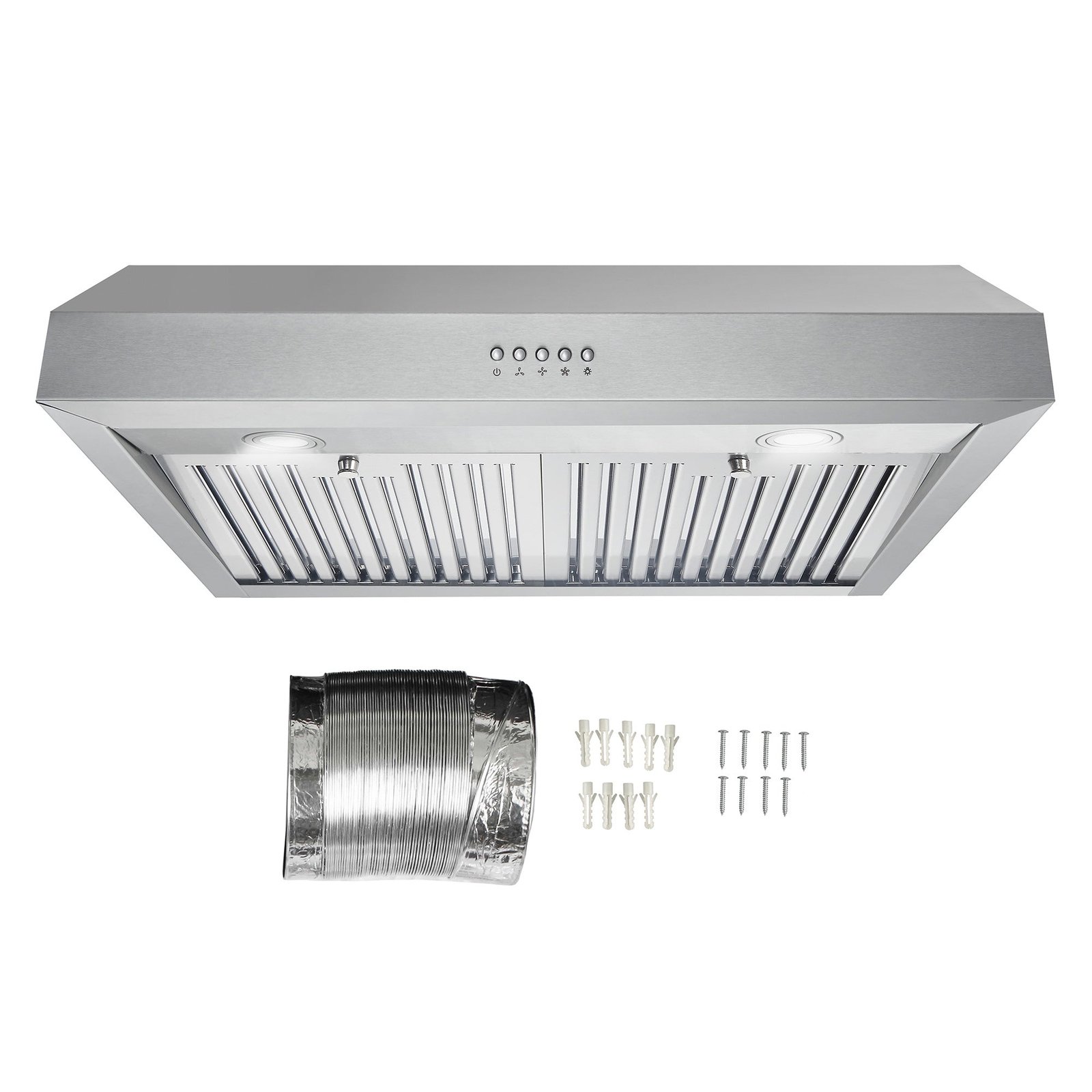 - Under cabinet range hood is made of premium 430-grade stainless steel, 20-Gauge thickness