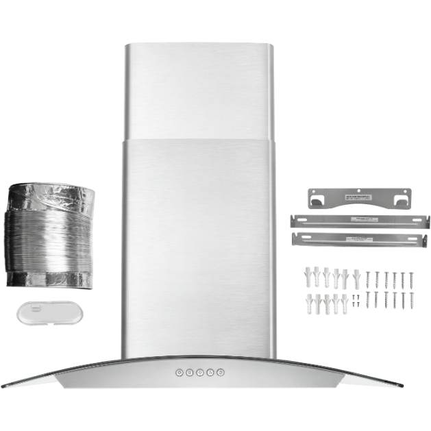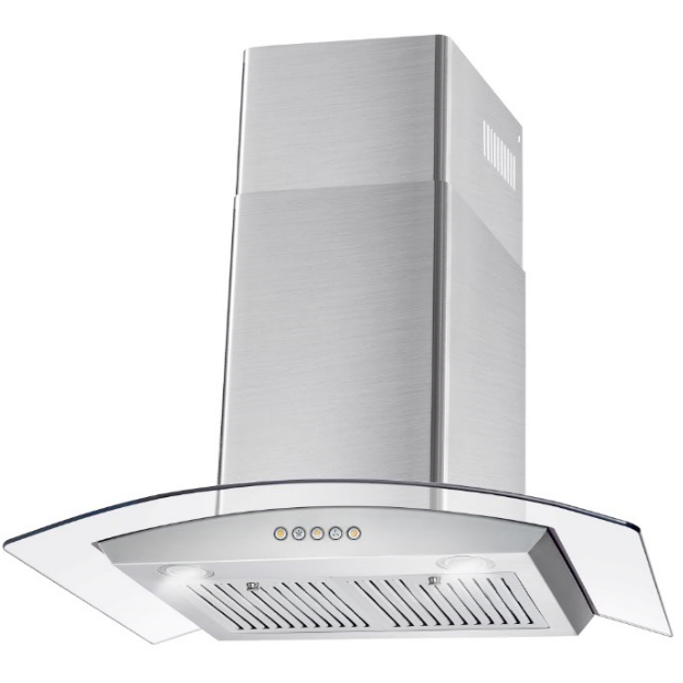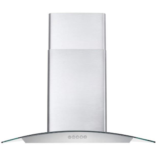 Elevate your kitchen decor to new heights. Cosmo’s COS-668A750 wall mount range hood features a stainless steel body with a tempered glass visor. Heavy-duty stainless steel permanent filters are dishwasher safe for easy clean-up. 380 cu. ft. per minute suction traps smoke and fumes from disturbing your home. The glass visor captures smoke and steam, ensuring it doesn’t escape into your home. Energy-efficient LED lighting is included to illuminate your cooktop. Featuring touch controls and a 3-prong power plug for easy use.