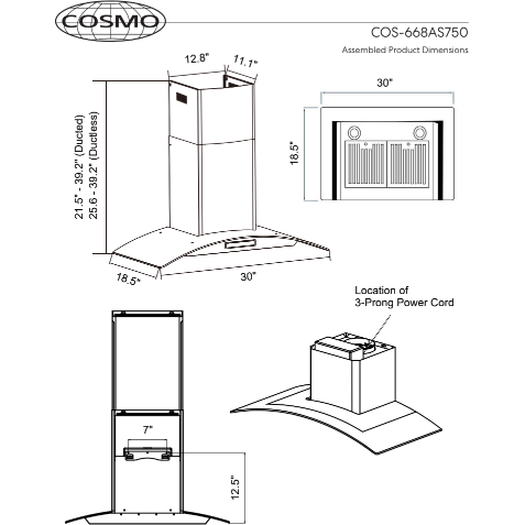 Be the first to review “Cosmo 30″ Ductless Wall Mount Range Hood in Stainless Steel with LED Lighting and Carbon Filter Kit for Recirculating COS-668AS750-DL”
