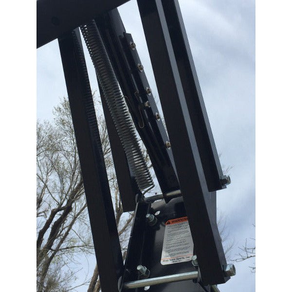 Our Insta-Just height adjustment mechanism allows the Champ Goal to adjust from 10′ to 7’6″ in six inch increments.  To adjust, use a broom handle to release the Insta-Just height regulator.