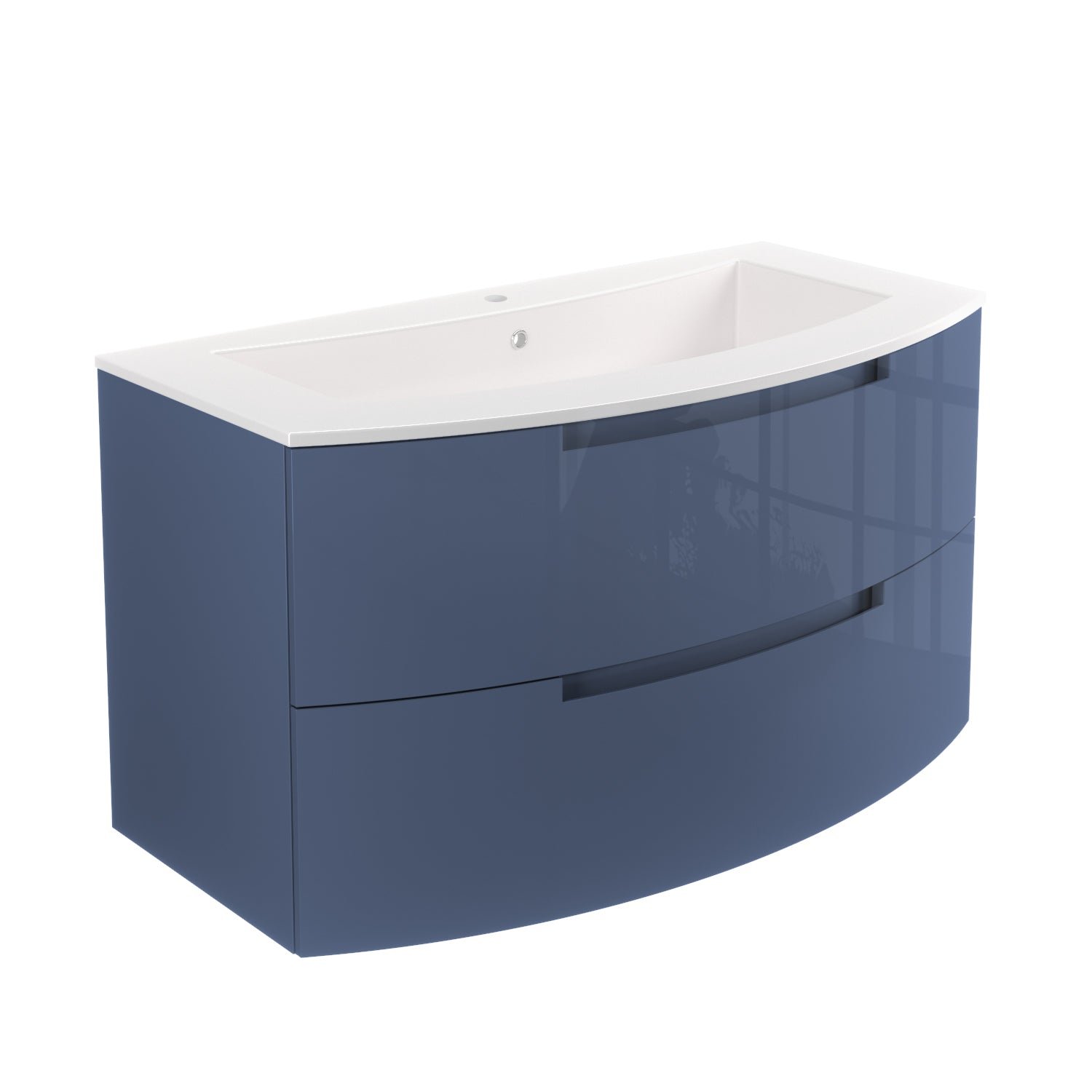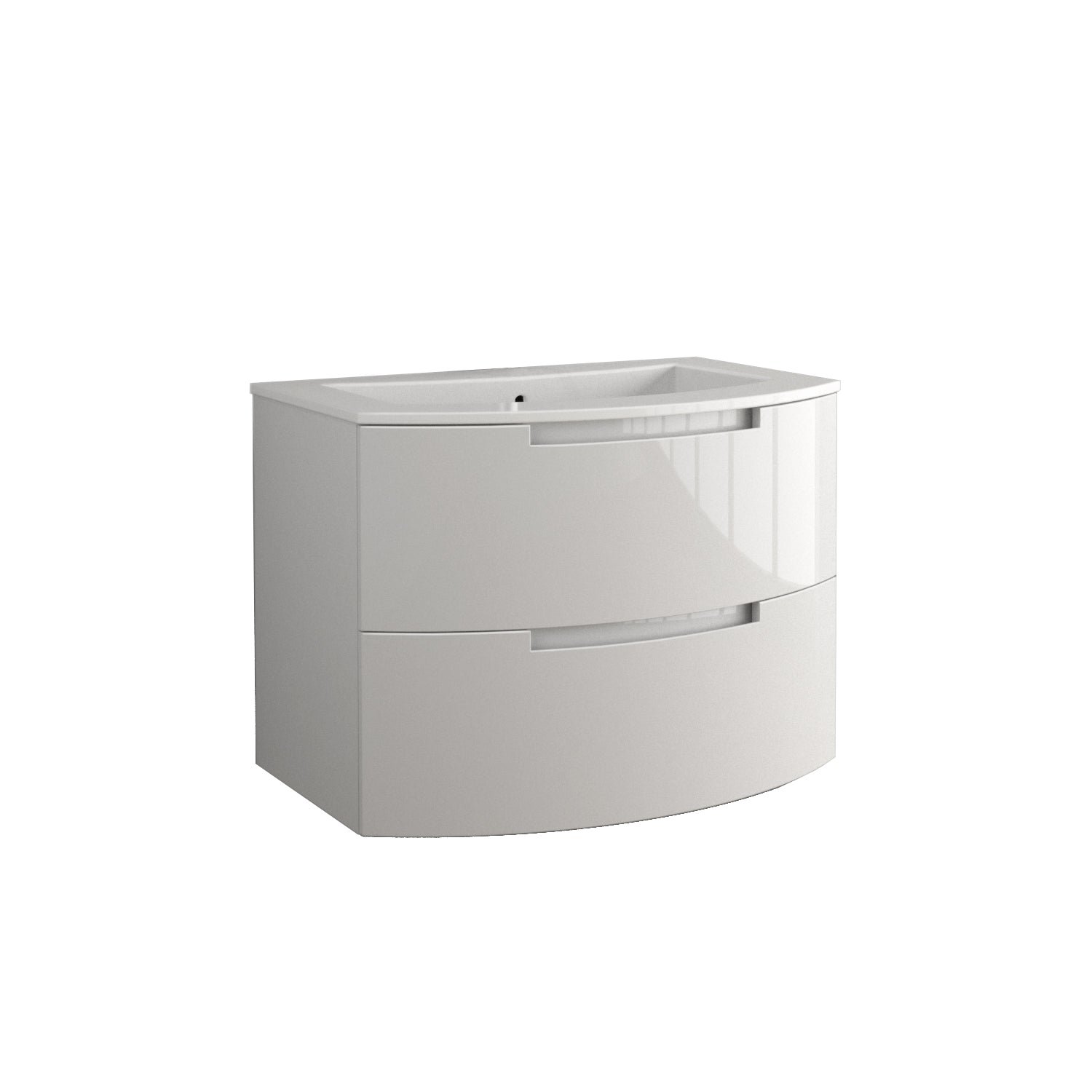 Oasi 39″ wall-mounted vanity in glossy black, white, blue distante, red, grey, slate or sand. This includes the vanity piece, which has two soft closing drawers, along with the Tekorlux (composite) sink top. Hardware is included. Optional legs are available (model number: OA-AM-LEGS).