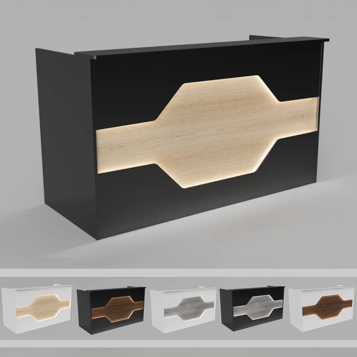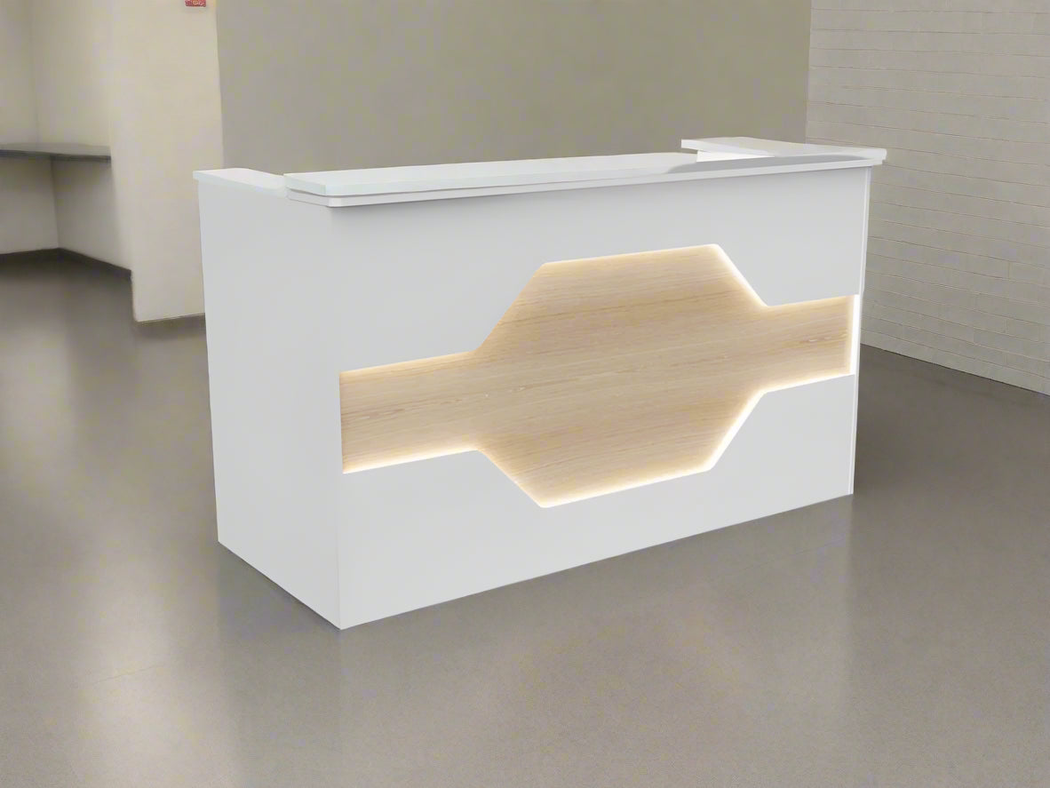 Reception Desk | Laminate Counter w/ LED Accent & Cable Grommets (4–7 ft)