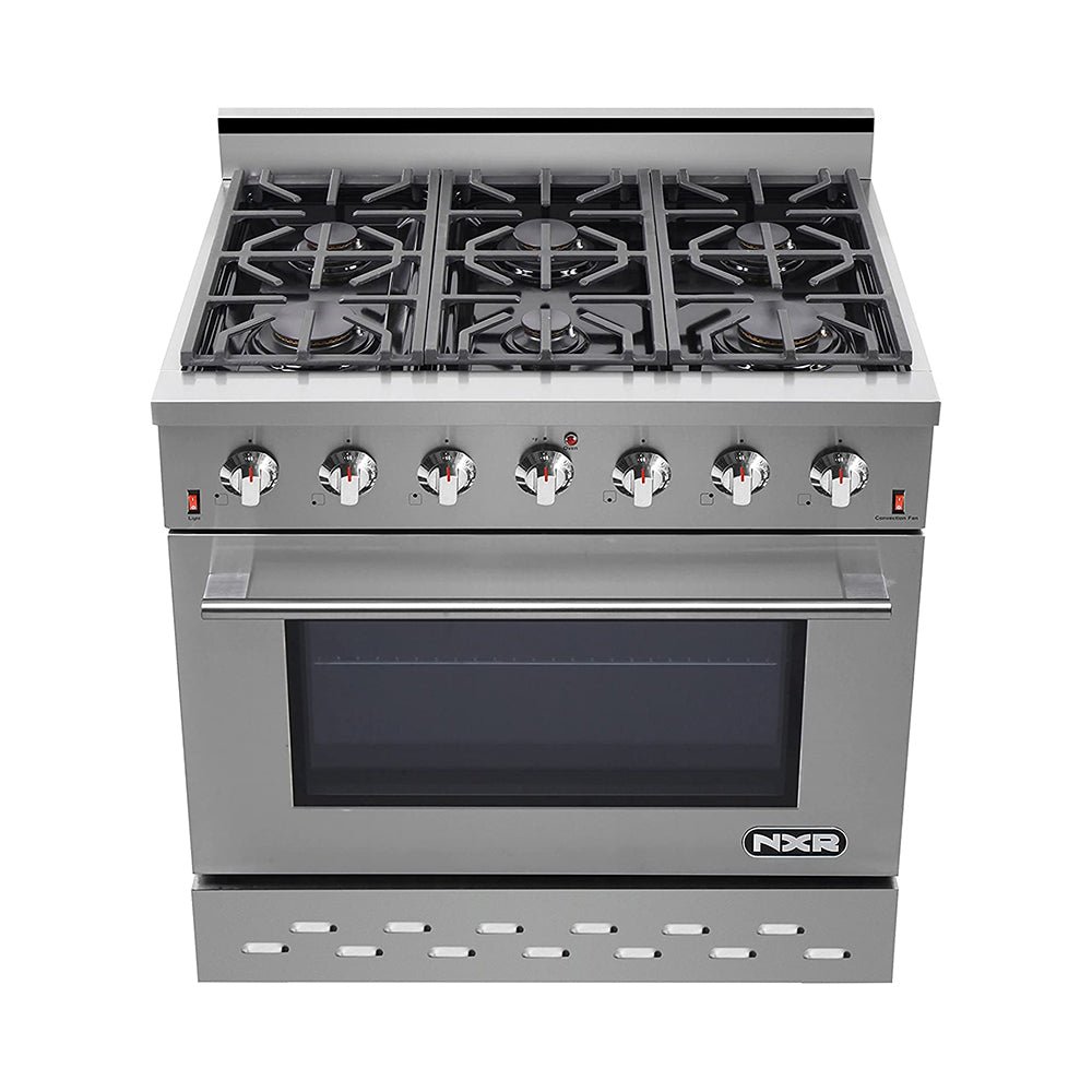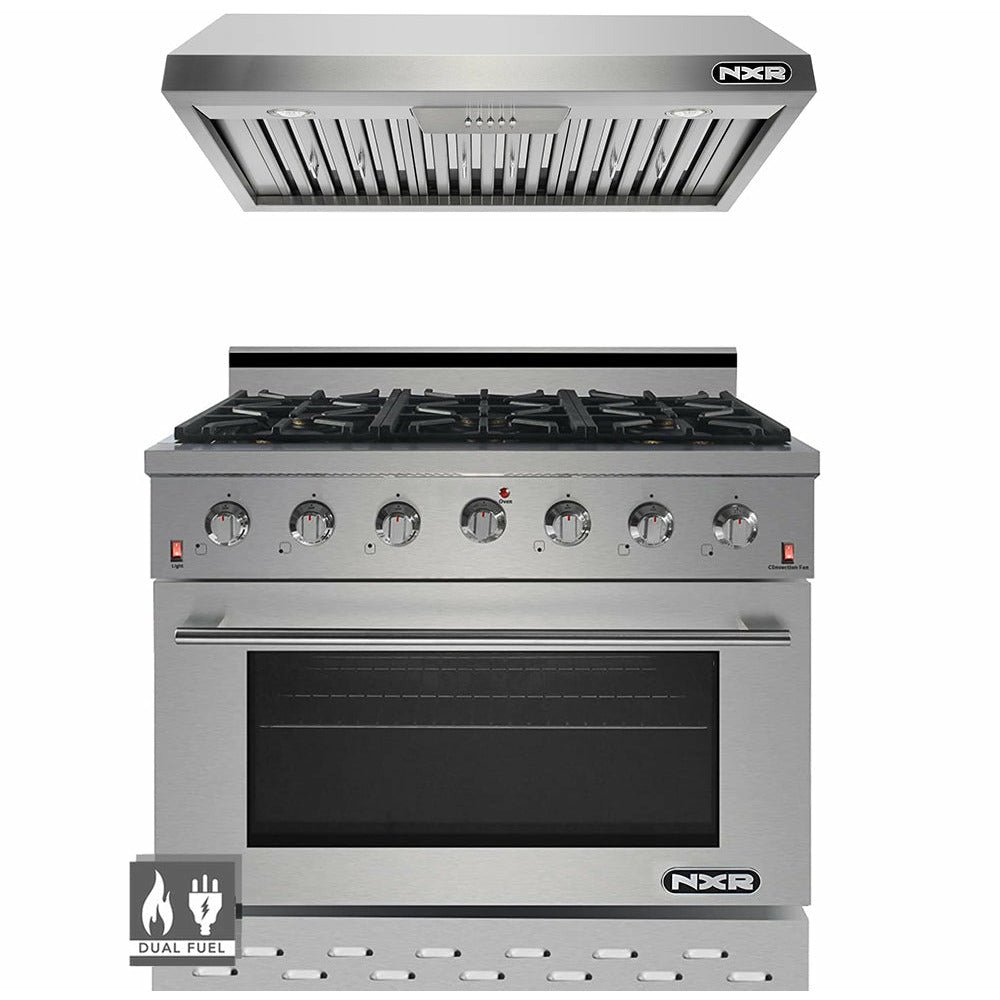 NXR SCD3611 36″ Natural Gas Dual Fuel Range & EH3619 Under Cabinet Hood Bundle, Stainless Steel SCD3611EHBD