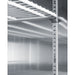 The SCR23SSGLH features a large 23 cu.ft. interior constructed from stainless steel for easy cleanup and lasting durability. The cantilevered shelving system allows you to adjust the four vinyl-coated shelves to virtually any position, making it easy to accommodate any sized item. This unit is designed to fit common commercial baking trays. The LED lighting offers an energy efficient display when the door is opened. It utilizes adjustable cycle defrost operation to avoid temperature spikes, with a top-mounted forced air cooling system to ensure rapid temperature recovery.