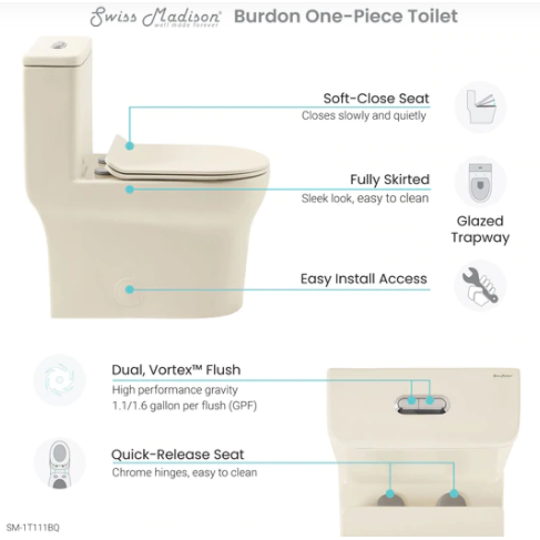 Swiss Madison Burdon One-Piece Elongated Toilet Vortex™ Dual-Flush 1.1/1.6 gpf – SM-1T111