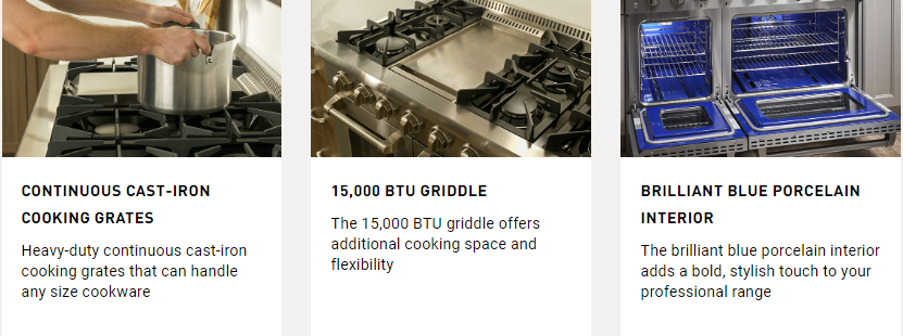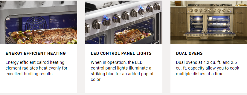 THOR Kitchen offers the power and performance of a premium professional appliance at a practical price. The THOR Kitchen 48 Inch Dual Fuel Range is a stainless-steel machine that is designed with professional features and functionality. This powerful range has 6 burners including two 18,000 BTU single burners, two 15,000 BTU dual burners and two 12,000 BTU single burners giving you the flexible cooktop you’ve been dreaming about. Oh, and did we mention the high-intensity 15,000 BTU stainless-steel griddle?