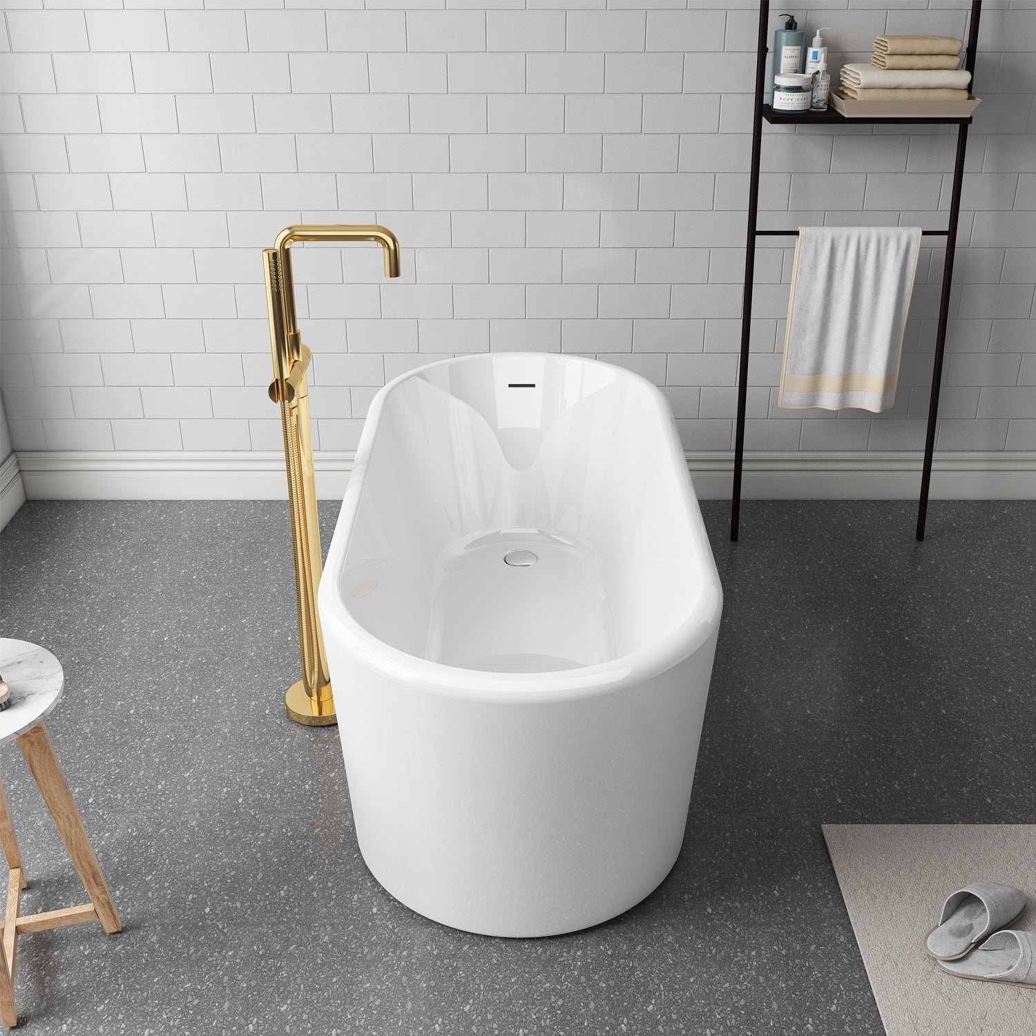 Want to add a bold splash of elegance to your master or guest bath? With its clean, contemporary design, the Vinnova Caserta Freestanding Bathtub is the stylish showpiece your bathroom needs. This piece has a spacious basin and sloped shape that make it ideal for deep, relaxing soaks after a hard day.
