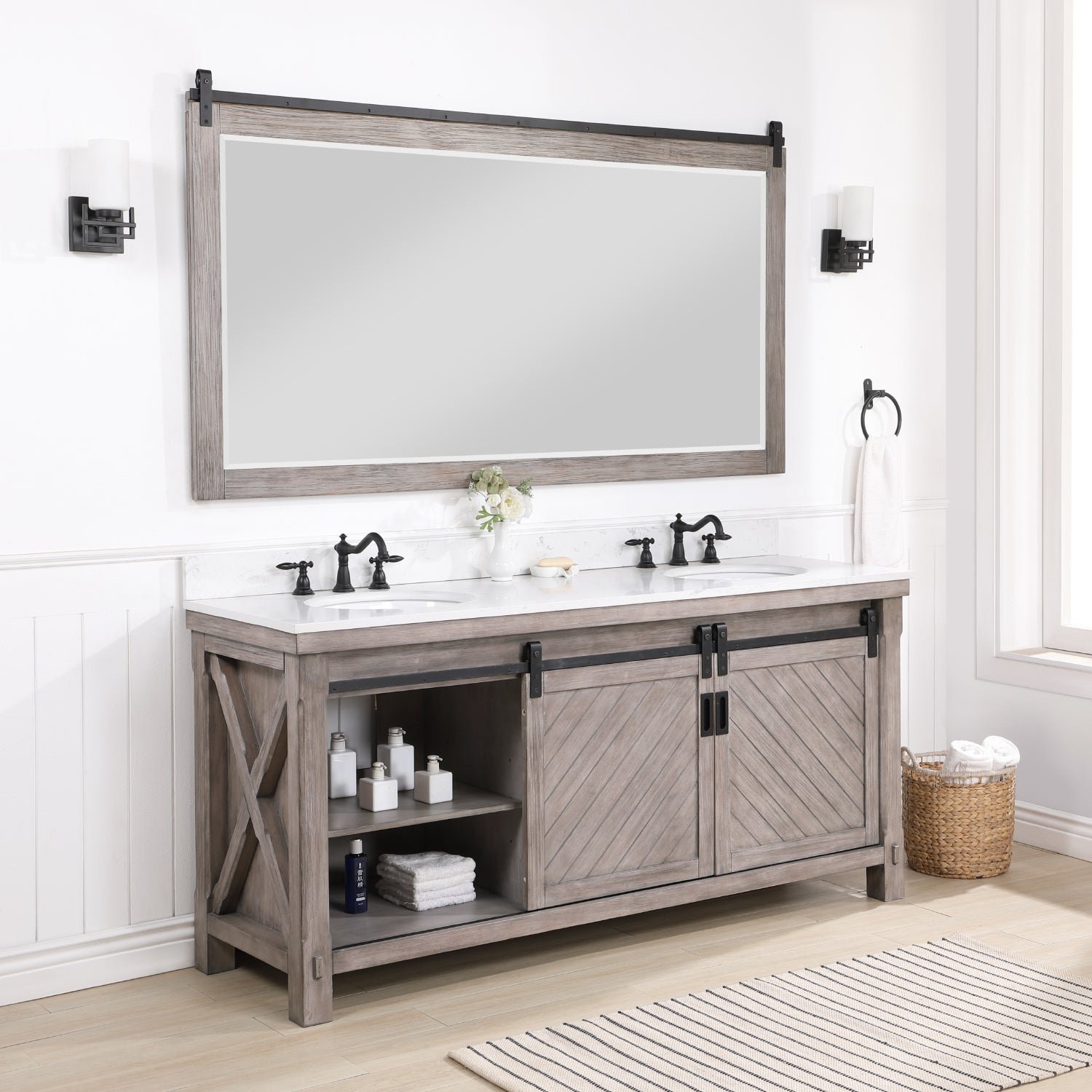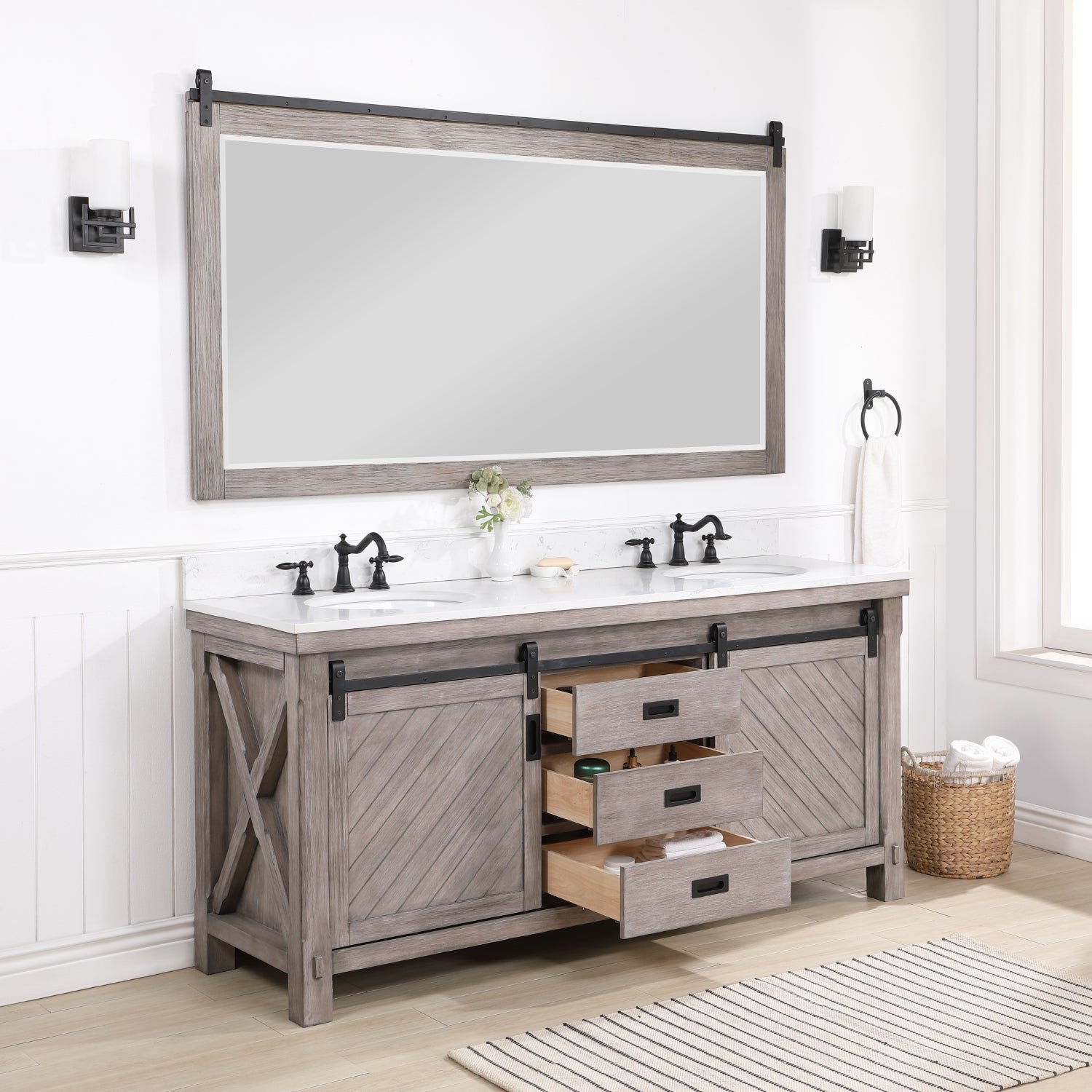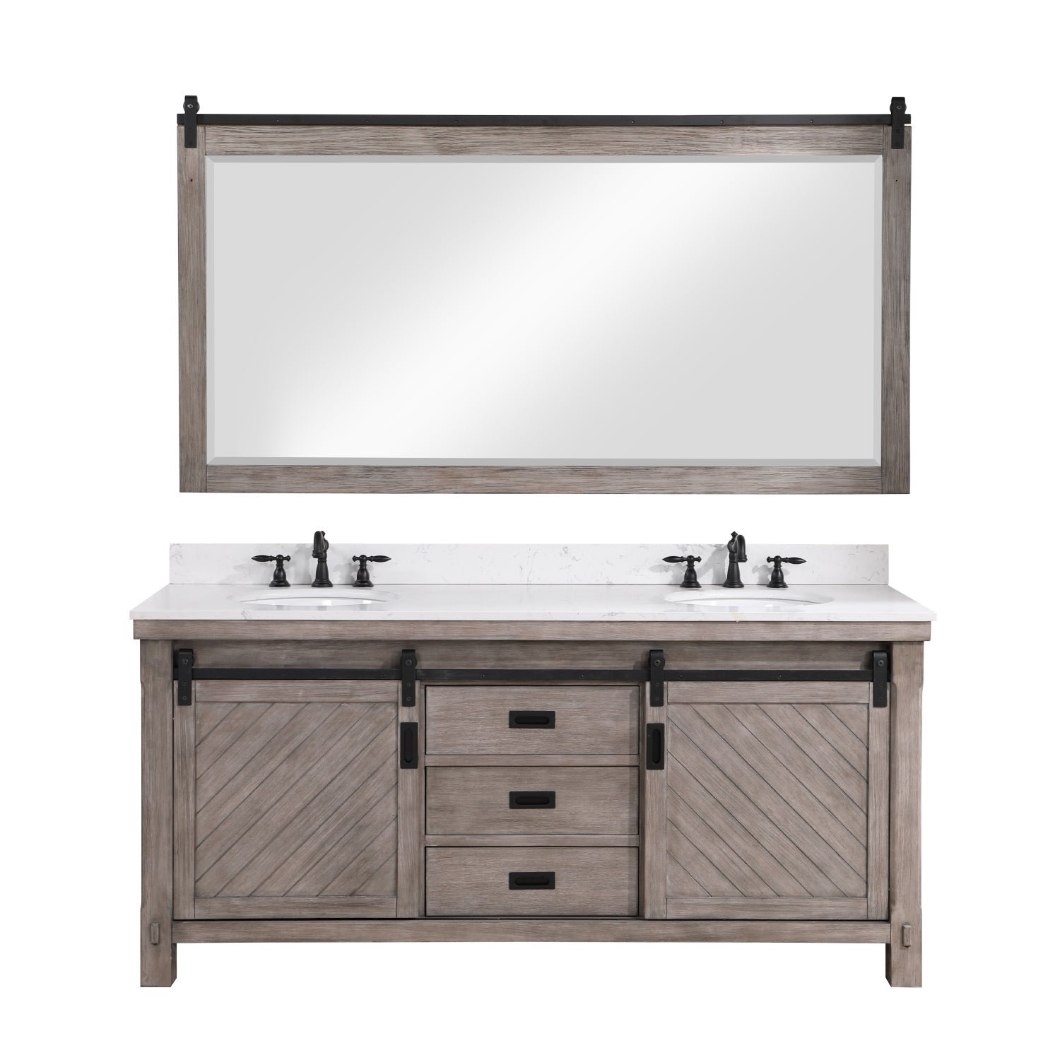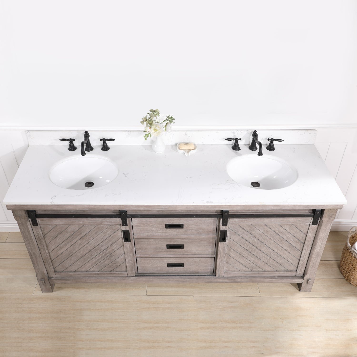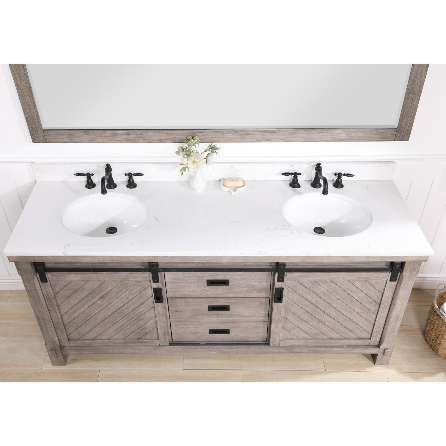 Vinnova Cortes 72″ Double Sink Bath Vanity in Classical Grey with White Composite Countertop and Mirror 701772-CR-WS