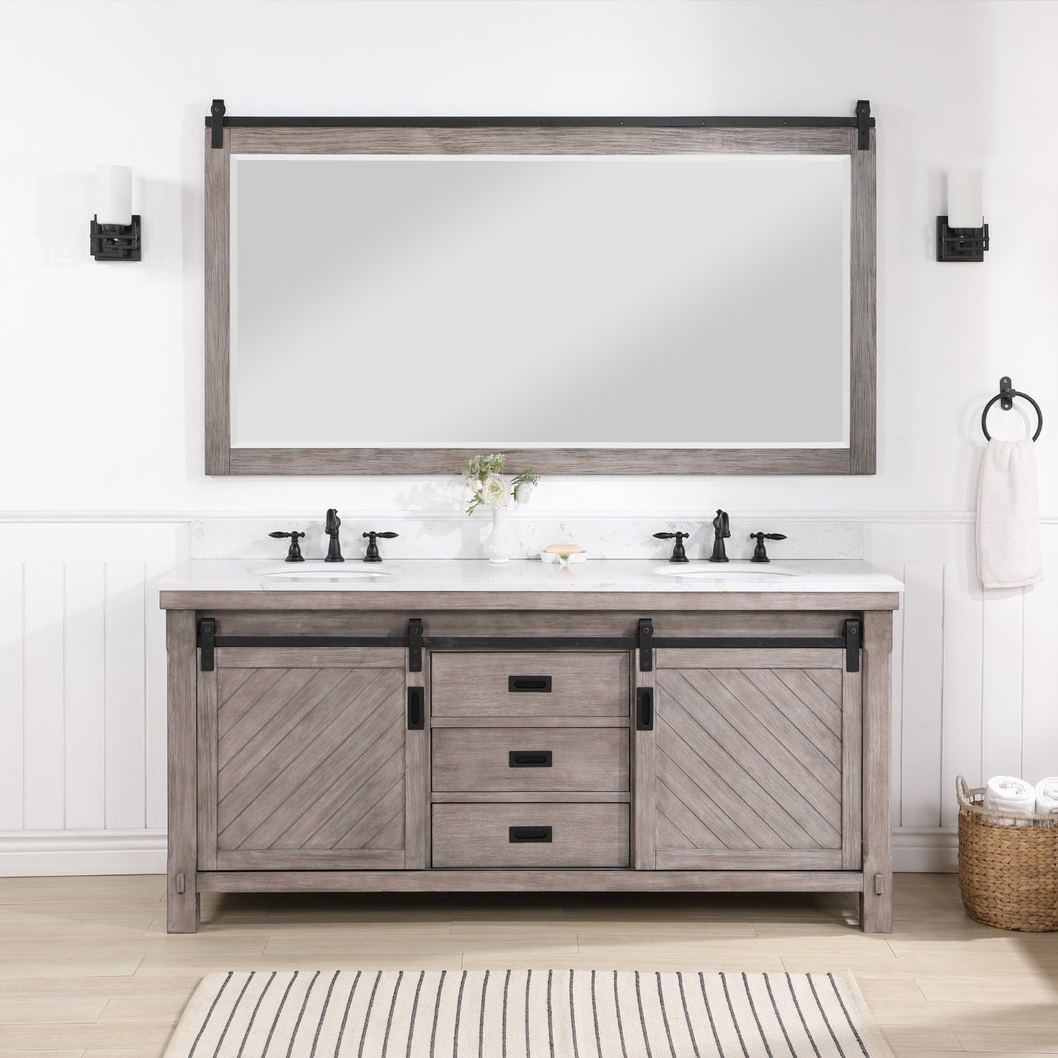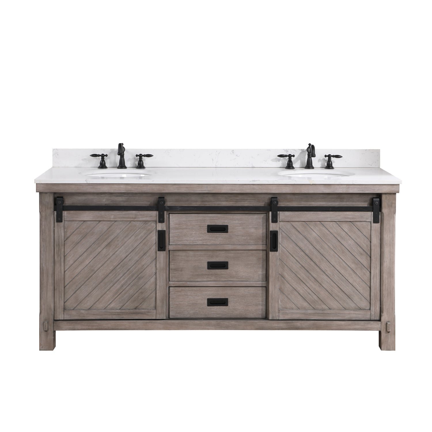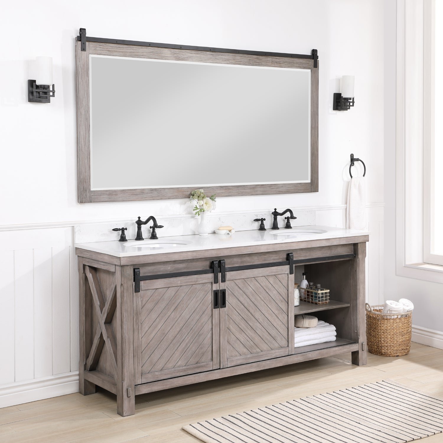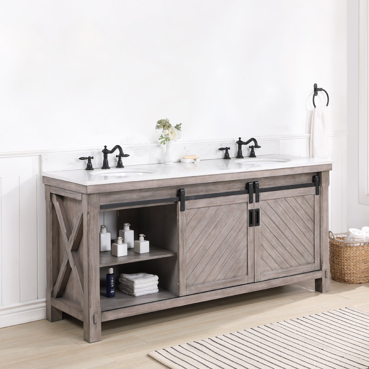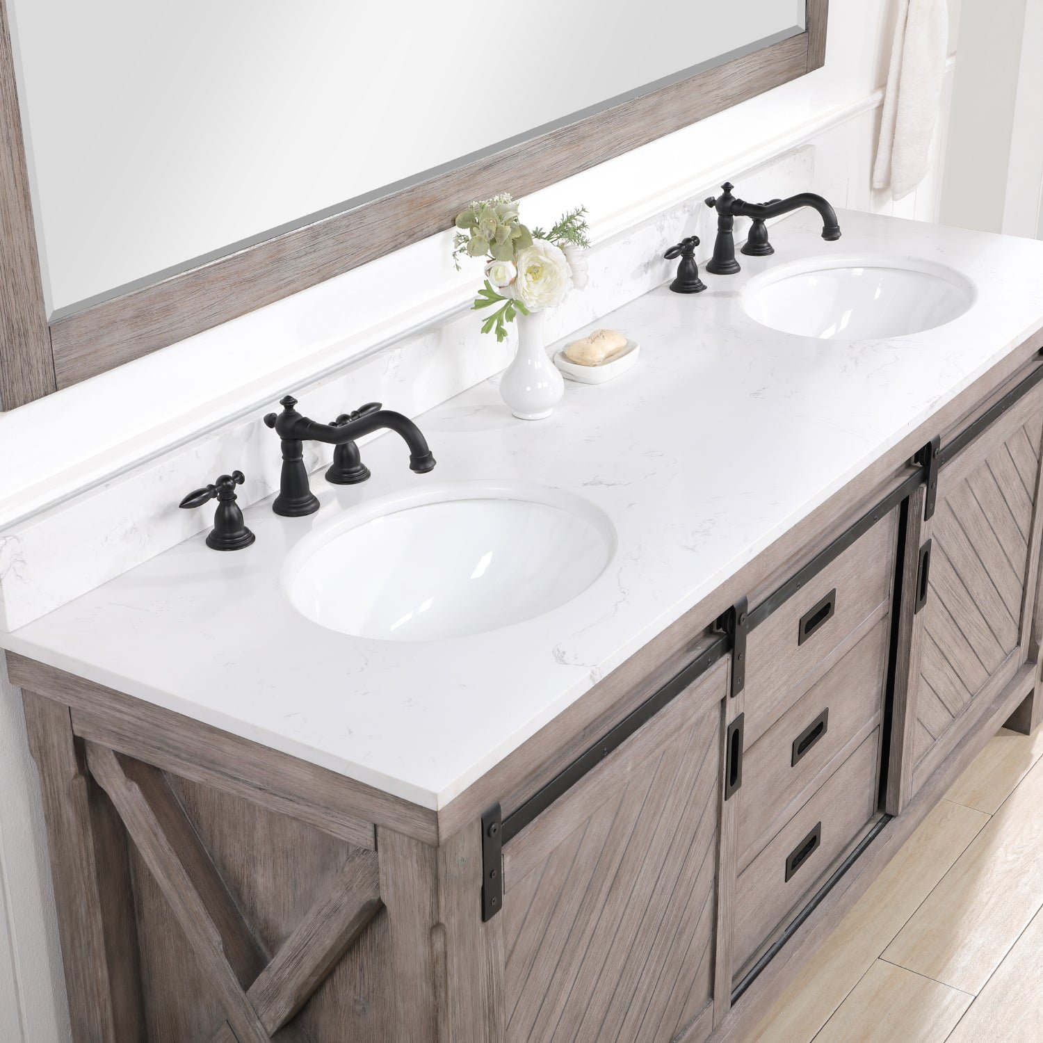 Vinnova Cortes 72″ Double Sink Bath Vanity in Classical Grey with White Composite Countertop and Mirror 701772-CR-WS