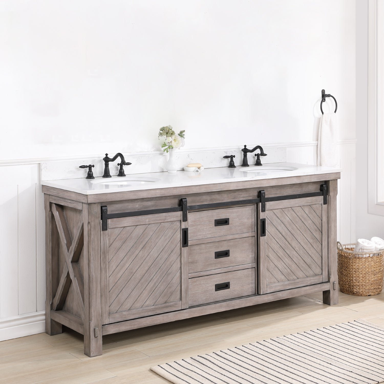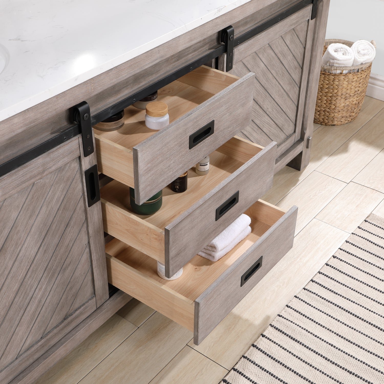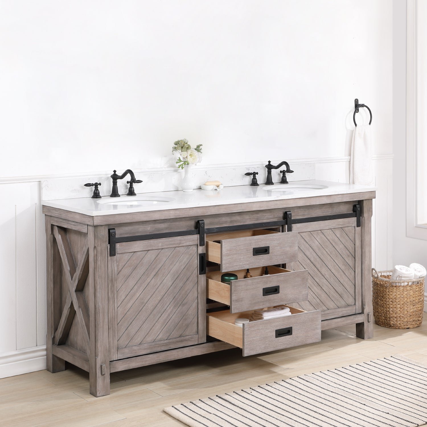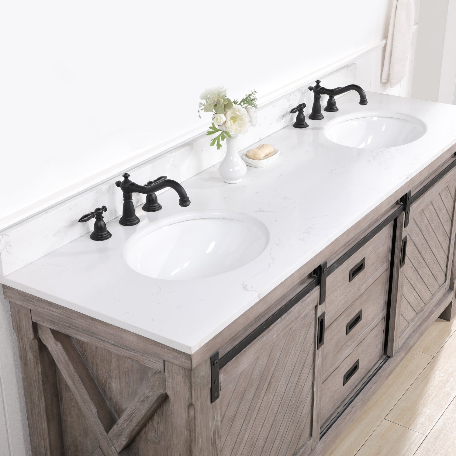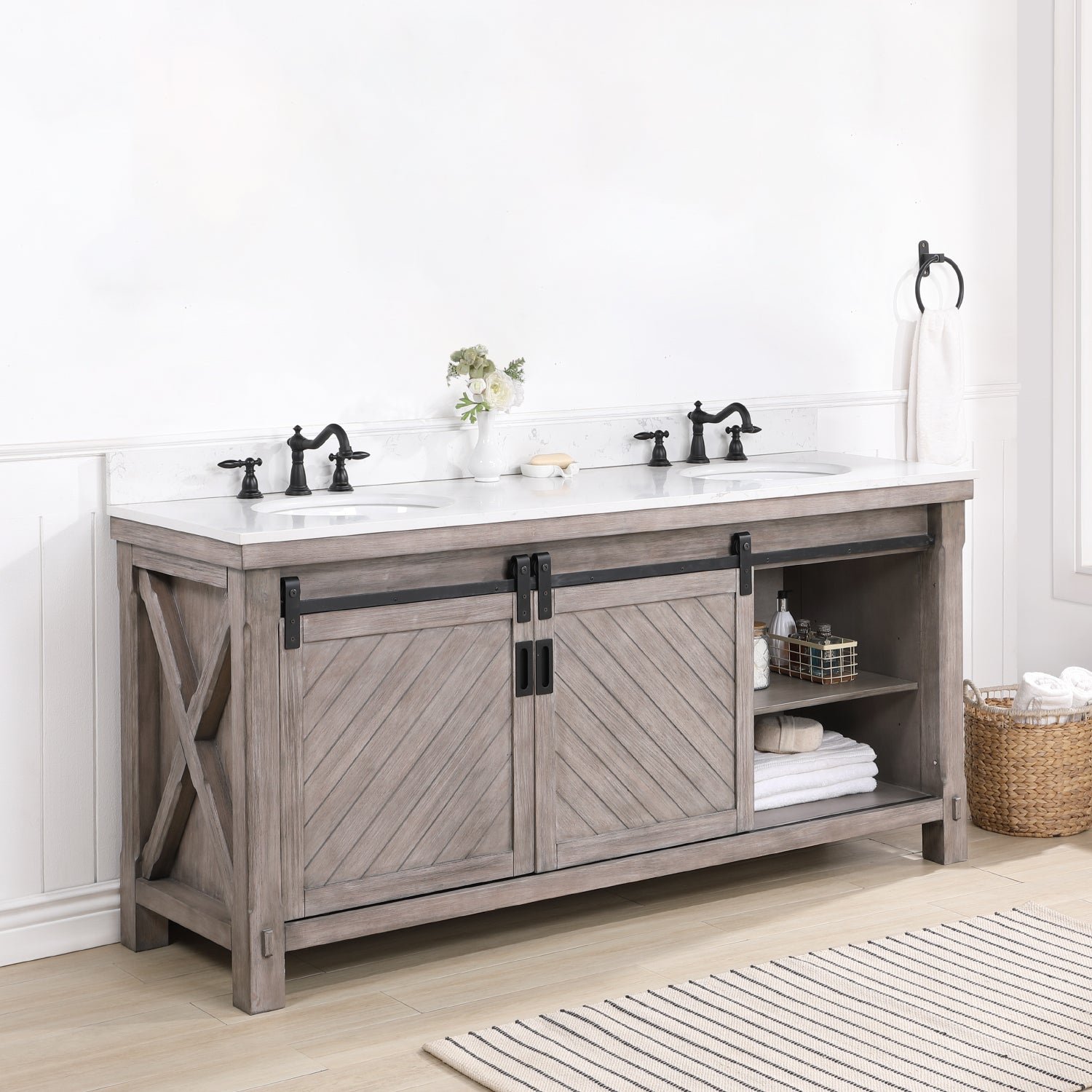 Vinnova Cortes 72″ Double Sink Bath Vanity in Classical Grey with White Composite Countertop and Mirror 701772-CR-WS
