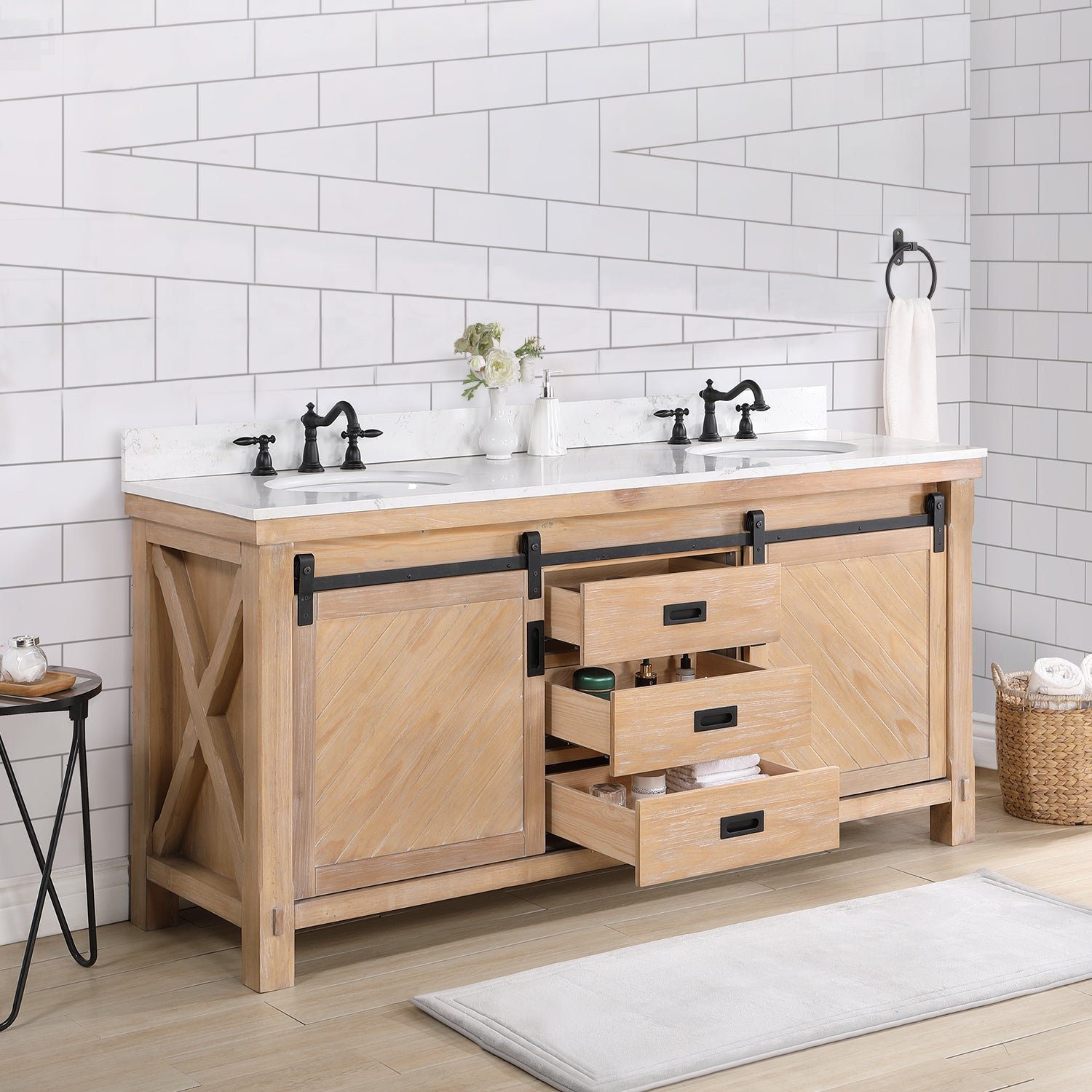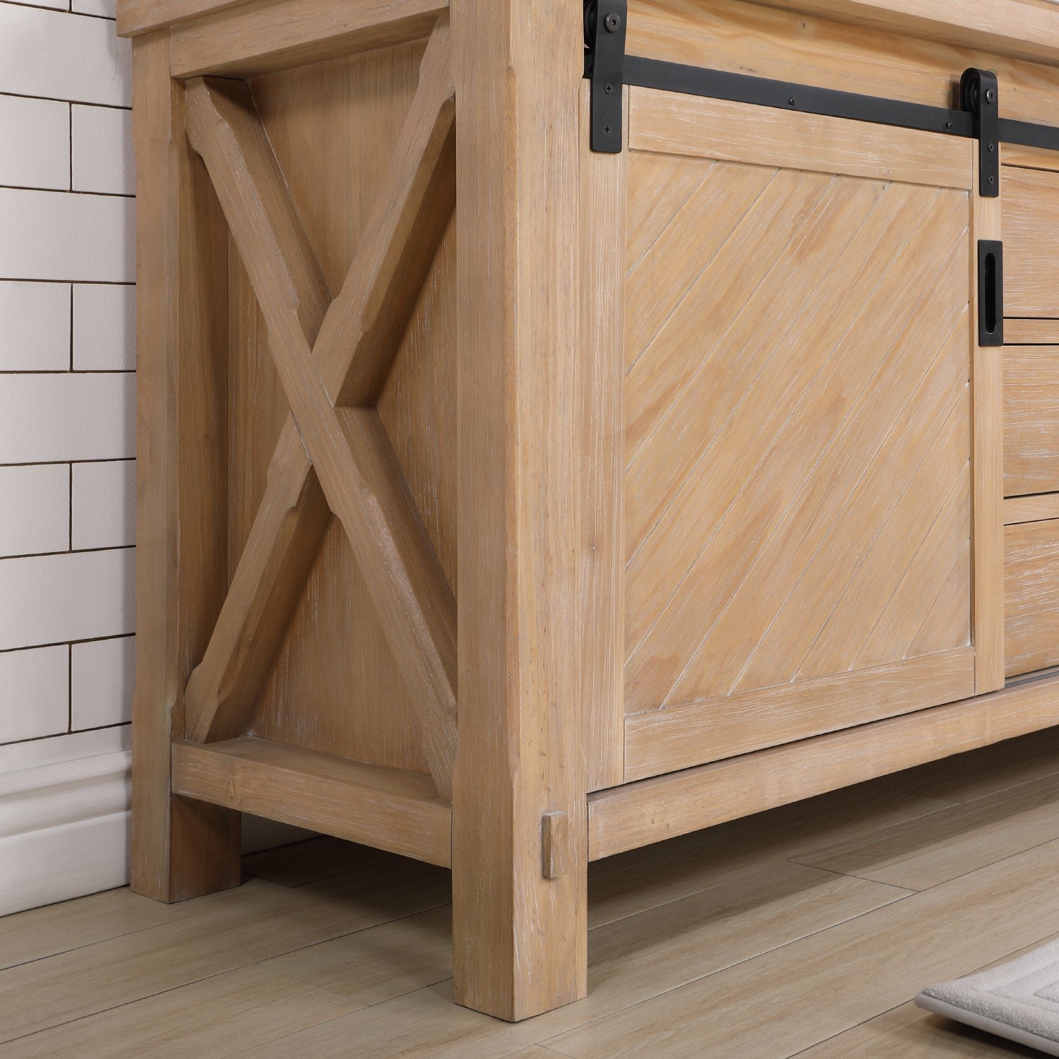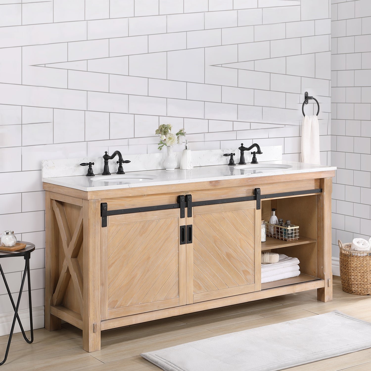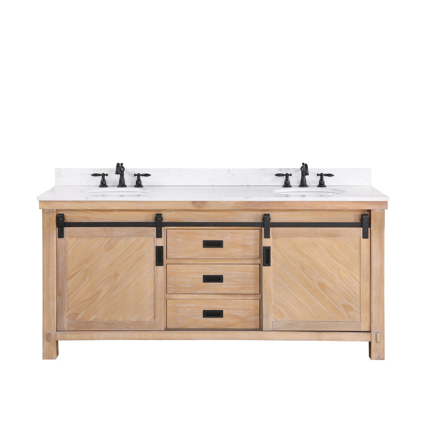 Vinnova Cortes 72″ Double Sink Bath Vanity in Weathered Pine with White Composite Countertop and Mirror 701772-WP-WS