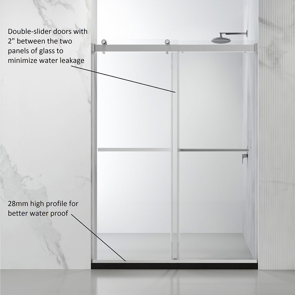 Vinnova Spezia 64″ W x 76″ H Rectangle Double Sliding Frameless Shower Enclosure in Polished Chrome 301064+36P-PC